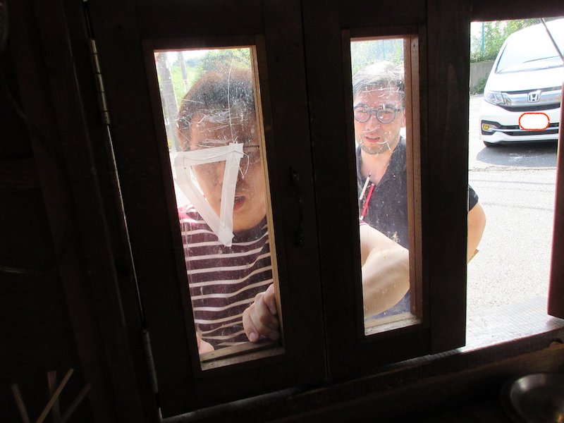 毎月最終金曜日に出店している東山田のDENさんのお客さんが、割れっ放しだった小窓のアクリルを入れ替えてくれました。ある日「直して差し上げましょう」と言われてビックリ。今月25日に最終の仕上げをしてくださるそうです。親切すぎます・・・
