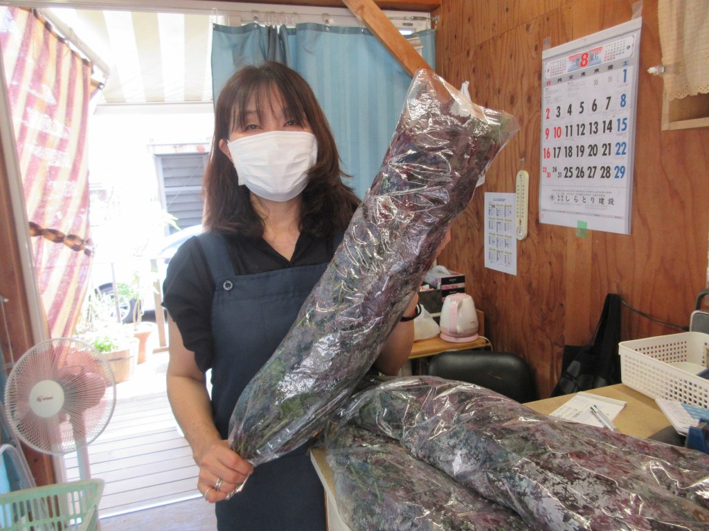 現在赤シソジュースにつかっている赤シソは、しらとり台の「軽井沢やさい館」さんで仕入れた無農薬のものです。